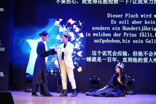 iBAND的Still breathing伴随着动感的伴奏点燃了全场。英语182重现了《音乐之声》经典片段,温暖动人,英语191的舞台剧The Snow White的小演员们表现惊艳,引来观众赞叹声不断。德语181的新颖配音《德国新声》展现了DB彩票 德语学子的扎实功底,更融入了对老师们的深情表白,获得全场如潮掌声。