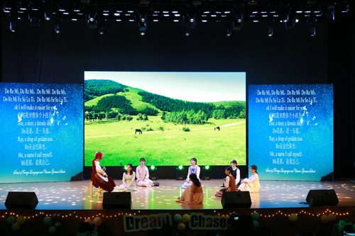 DB彩票 学生组合 fifth Vane 带来了阿卡贝拉Words, 让我们沉醉于音乐的魅力。计算机国际班德语完美演绎《我们的2+3》,走近我们的奋斗之梦。压轴节目是英语183带来的英文版《我和我的祖国》庆祝建国七十周年,回顾一年,青春展望,家国情怀。