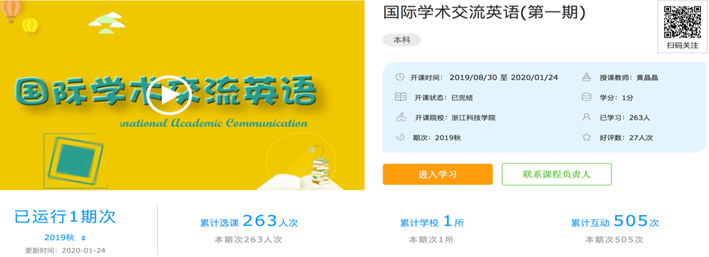 线上MOOC已在浙江省高等DB彩票 在线开放课程共享平台开设第二期。课程以一名申请参加国际学术会议的学生为主人公,四名主讲教师为帮助者,解决其在准备学术会议过程中的一系列问题为故事主线展开。共有七个教学单元: 背景知识介绍、会议前的协作准备、会议中的自我介绍、准备会议演讲、展开会议演讲、会议讨论、会议用餐。每个教学单元由若干个微课视频构成,每个教学视频包括主题导入、内容详解、知识点回顾和课后拓展四个部分,视频总时长约260分钟。此外每个章节均附有PPT供学生学习参考,每个章节后配套相应的在线习题,每个单元配套一次单元测验,并配合课堂教学布置在线讨论等,以此展开MOOC教学。