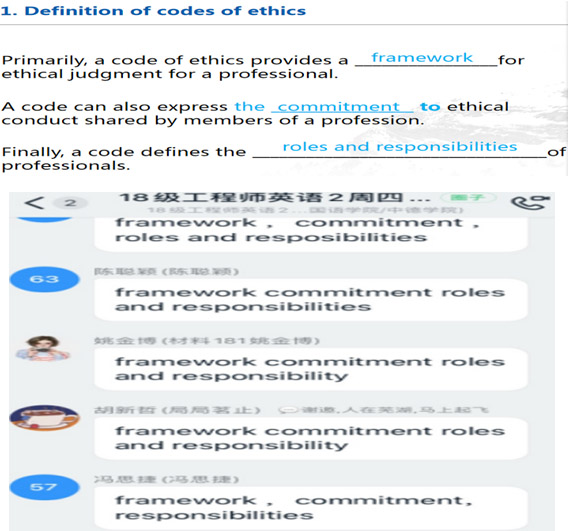 “离校不离教,停课不停学”,网络直播成为各高校的上课方式。网络直播上课时教师看不到学生,学生最多能看到老师的脸,与学生之间如何开展互动,成为教师的一大难题和挑战。教师无法与之前的课堂一样,实时、随时与学生沟通和交流,教师也无法实时了解学生的学习情况。针对上述困惑,我们在“工程师英语2”的第一次直播课中做了以下尝试,收到了非常不错的反响。