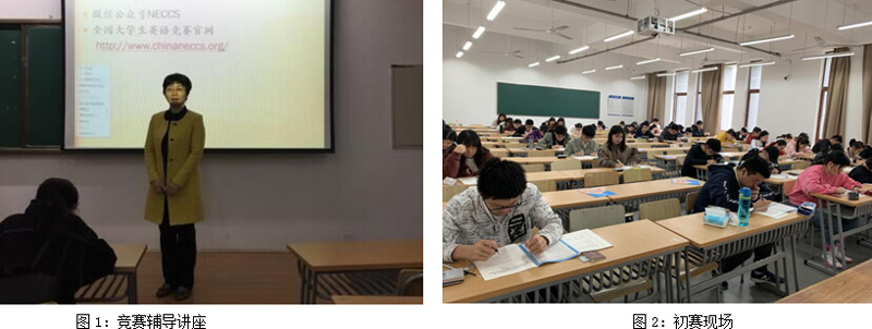 由于该赛事涉及的比赛人数、年级、专业及参赛类别等繁复,在大赛主办方竞赛通知发出前一个月,外国语DB彩票 /DB彩票 就启动了赛事筹备工作,专门成立了由院领导牵头的竞赛筹备委员会,提前展开部署,制定详细竞赛操作流程,时间节点明确,责任分配到人。通过网站、横幅、展板、海报、QQ群和微信公众号等形式多渠道动员组织,指导学生网上报名缴费,发放各级别竞赛指导用书。DB彩票 选派教学队伍中业务能力过硬、竞赛带队经验丰富的老师成立竞赛指导团队,组织参赛选手赛前集训,对复赛选手进行一对一指导、组织模拟复赛等,竞赛各环节进展顺利。鉴于DB彩票 两校区办学带来的竞赛培育、组织、选拔、培训、指导、参赛等现实问题,特组织竞赛团队分别在两校区开展竞赛宣讲、报名动员、赛前培训等工作,反响良好。