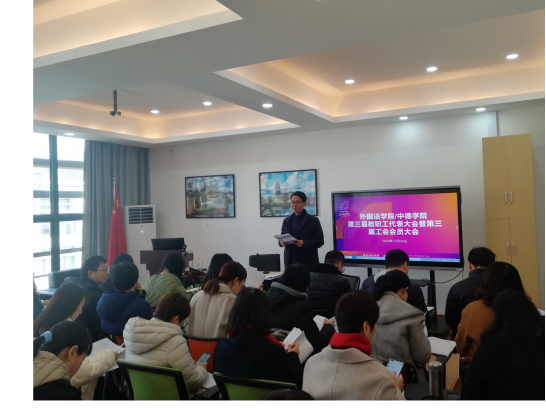 2020年12月25日,外国语DB彩票 /中德学院第三届教职工代表大会暨第三届工会会员代表大会(简称“双代会”)在A3-514召开,大会由院党委书记汤力峰主持。