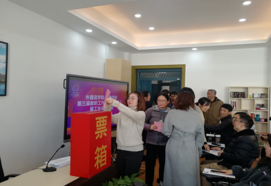 会议的最后议程是外国语DB彩票 /DB彩票 第三届分工会委员会选举投票。投票过程严谨公正,监、计票人认真履责,切实保障了投票结果真实有效。最后由院党委书记汤力峰宣布投票结果: 7位候选人得票数超过应到会人数的二分之一以上,选举有效,顺利当选为第三届分工会委员。
