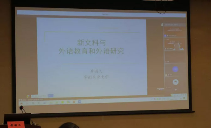 院长黄国文教授以《新文科与外语教育和外语研究》为主题作了主旨报告。他以新时代教育的根本问题为切入点,指出新时代教育的共同点、外语学科与其他学科的关系、新文科视域下的外语教育和外语研究问题,并强调各高校必须凝练外语学科的特色,要依靠母体DB彩票