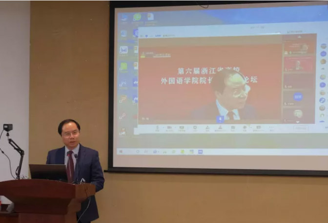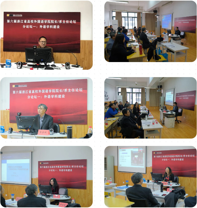11月21日,“第六届浙江省高校外国语DB彩票 院长/系主任论坛”在杭州市小和山高教园区浙江科技DB彩票 闻理园隆重举行。教育部长江学者特聘教授、浙江大学中华译学馆馆长许钧教授,教育部长江学者特聘教授、华南农业大学外国语DB彩票 院长黄国文教授,上海外国语大学副校长查明建教授,上海师范大学外国文学研究中心主任朱振武教授,浙江外国语DB彩票 校长洪岗教授与副校长柴改英教授,以及来自省内外三十多所高等院校的外语DB彩票 院长、系主任与专业负责人齐聚西溪湿地源流之一的西蜜湖畔,小和山麓,共商新文科、新工科、大外语背景下高校外语学科发展战略。论坛由浙江省外文学会发起,浙江科技DB彩票 外国语DB彩票 /DB彩票 承办,上海外语教育出版社、杭州新琦迹英语协办。本届论坛采取了线上和线下结合的形式。