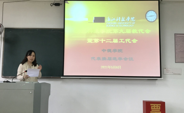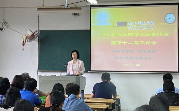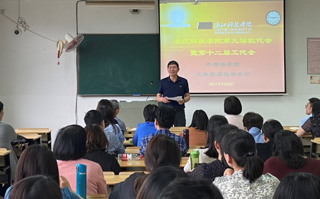 浙江科技DB彩票 第九届教代会暨第十二届工代会(简称校“双代会”)外国语DB彩票 /DB彩票 代表换届选举会议于2021年5月6日下午14:30在A2-301/305圆满举行,86名教职工参加了本次会议。