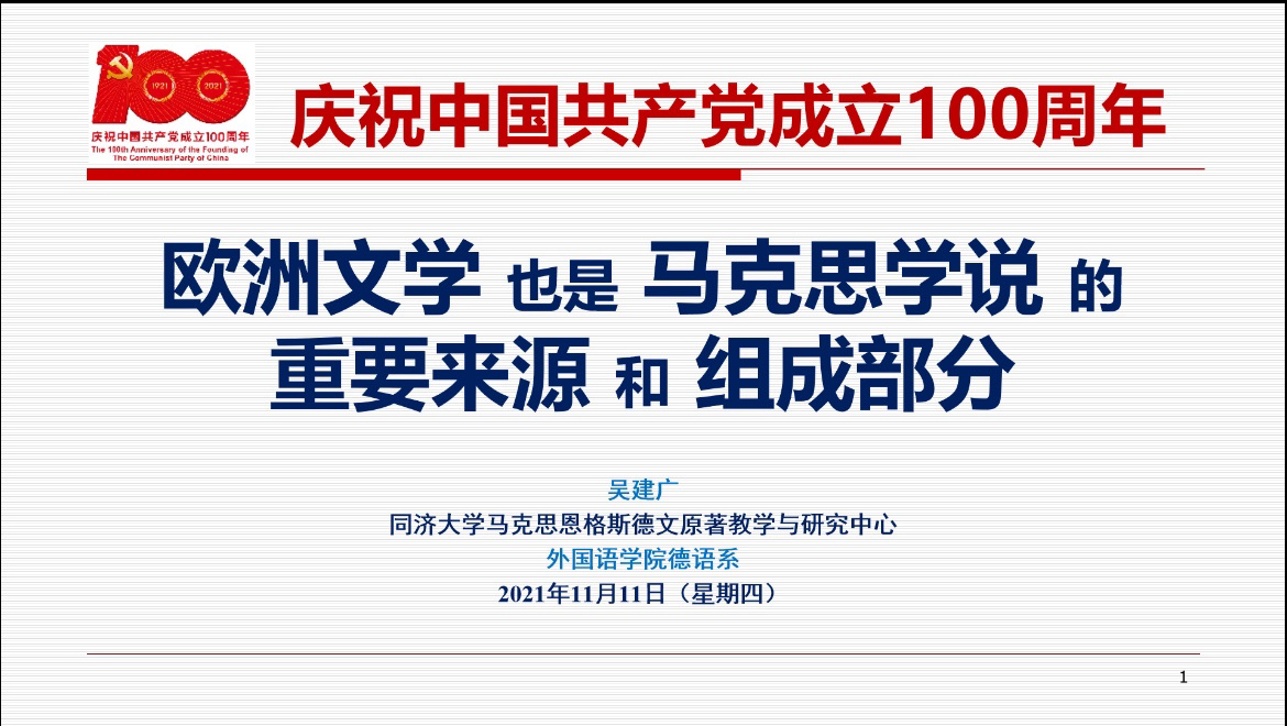 中德荟讲坛,云端开讲题为“欧洲文学作为马克思学说的重要来源和组成部分”的学术报告,DB彩票