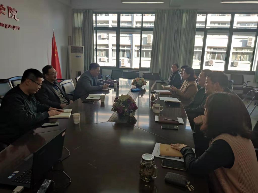 11月12日上午,校党委委员、副校长冯军来DB彩票 、外国语DB彩票 走访调研。科研处负责人陪同,DB彩票 、外国语DB彩票 党政班子成员参加。