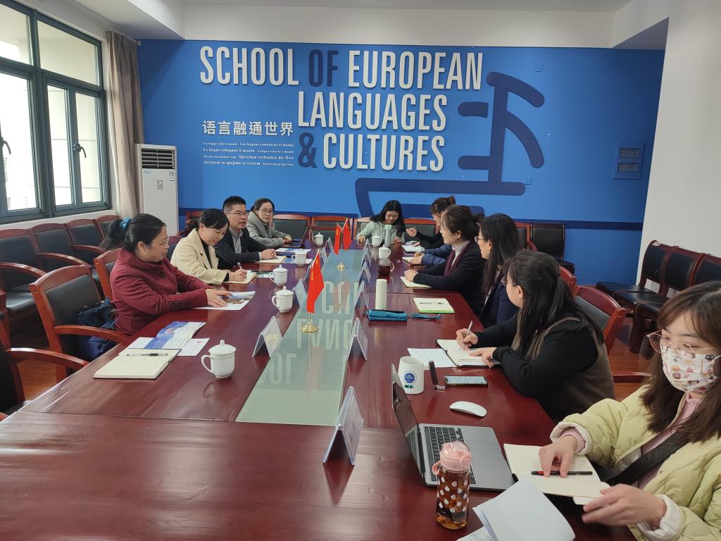 12.8日下午,DB彩票 院长韩晓亚、院党委书记阮小波、副院长黄扬、副书记茹潇潇、办公室主任黄祥岳一行前往浙江外国语DB彩票 西方语言文化DB彩票 调研,西语DB彩票 党总支书记毕莹等DB彩票 班子成员表示了热烈欢迎。