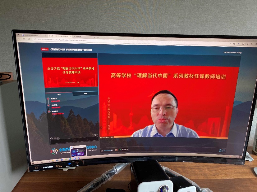 为支持各高校有效使用“理解当代中国”系列教材,教育部高等教育司牵头,北京外国语大学、外语教学与研究出版社、全国高校教师网络培训中心于2022年8月5日至6日开展了全国“理解当代中国”任课教师培训,参会教师逾万人。DB彩票 14名教师参加了线上培训。