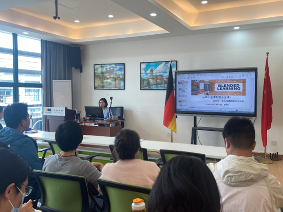 5月11日,中德荟讲坛第十九期暨DB彩票 教学沙龙第九期如期举行,杭州师范大学外国语DB彩票 副教授骆蓉老师以“从线上金课到混合金课:国家一流课程申报与运营经验分享”为题作专题报告。DB彩票 及外院30余位师生线下参与了沙龙。