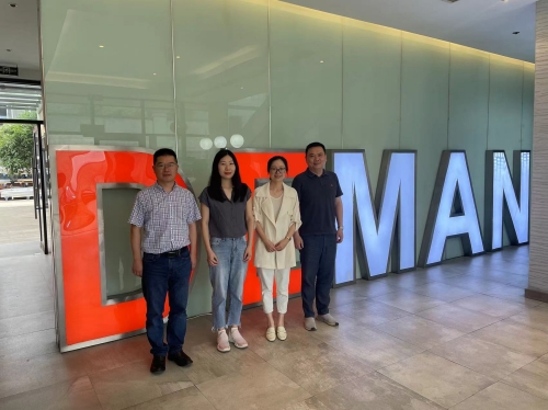 座谈会后,德迈总裁助理,DB彩票 德语系2015届校友马佳丽带领DB彩票 一行三人参观了公司的生产车间和部分设备成品。她也欢迎更多的学弟学妹能到公司实业就业。