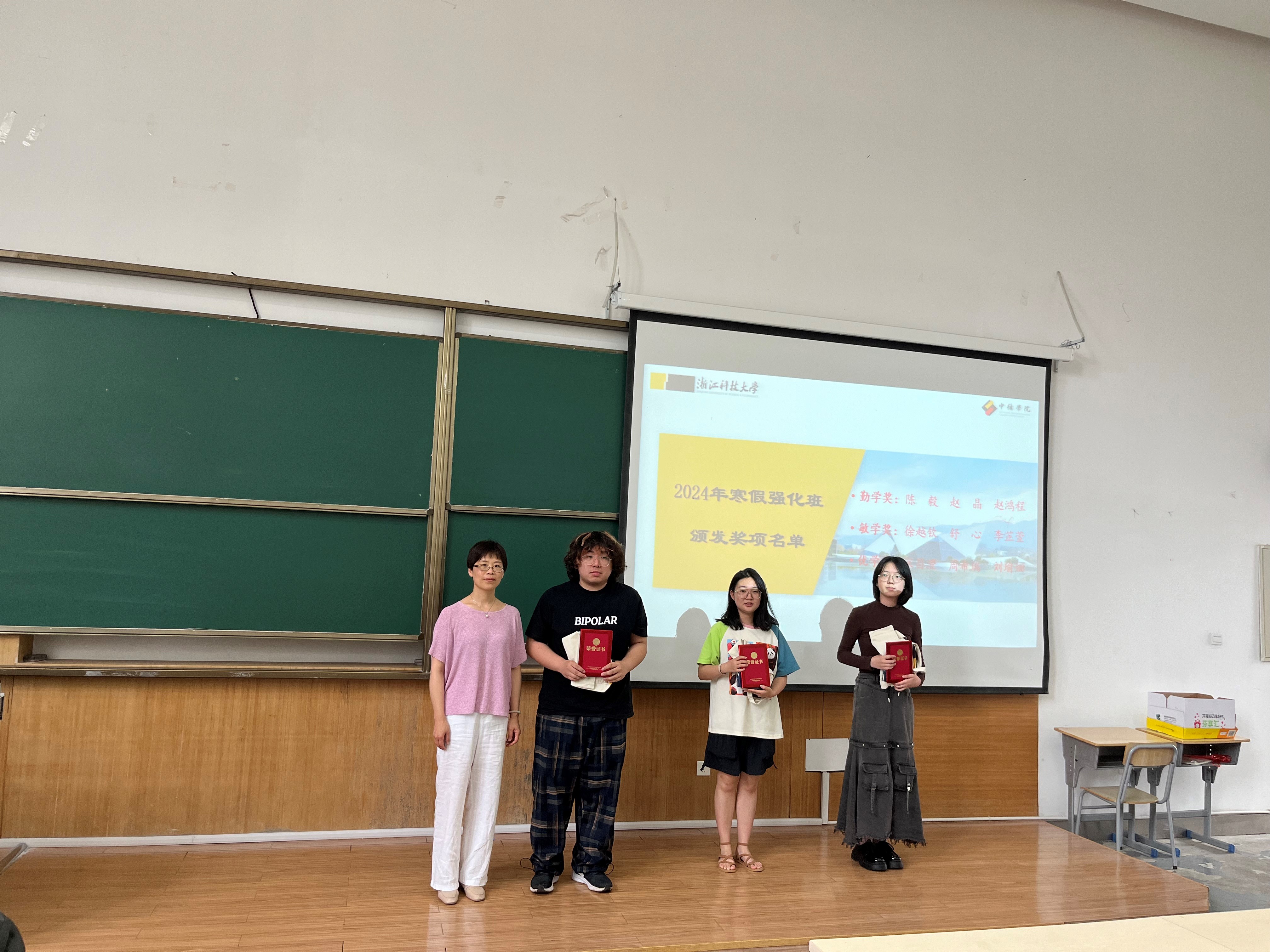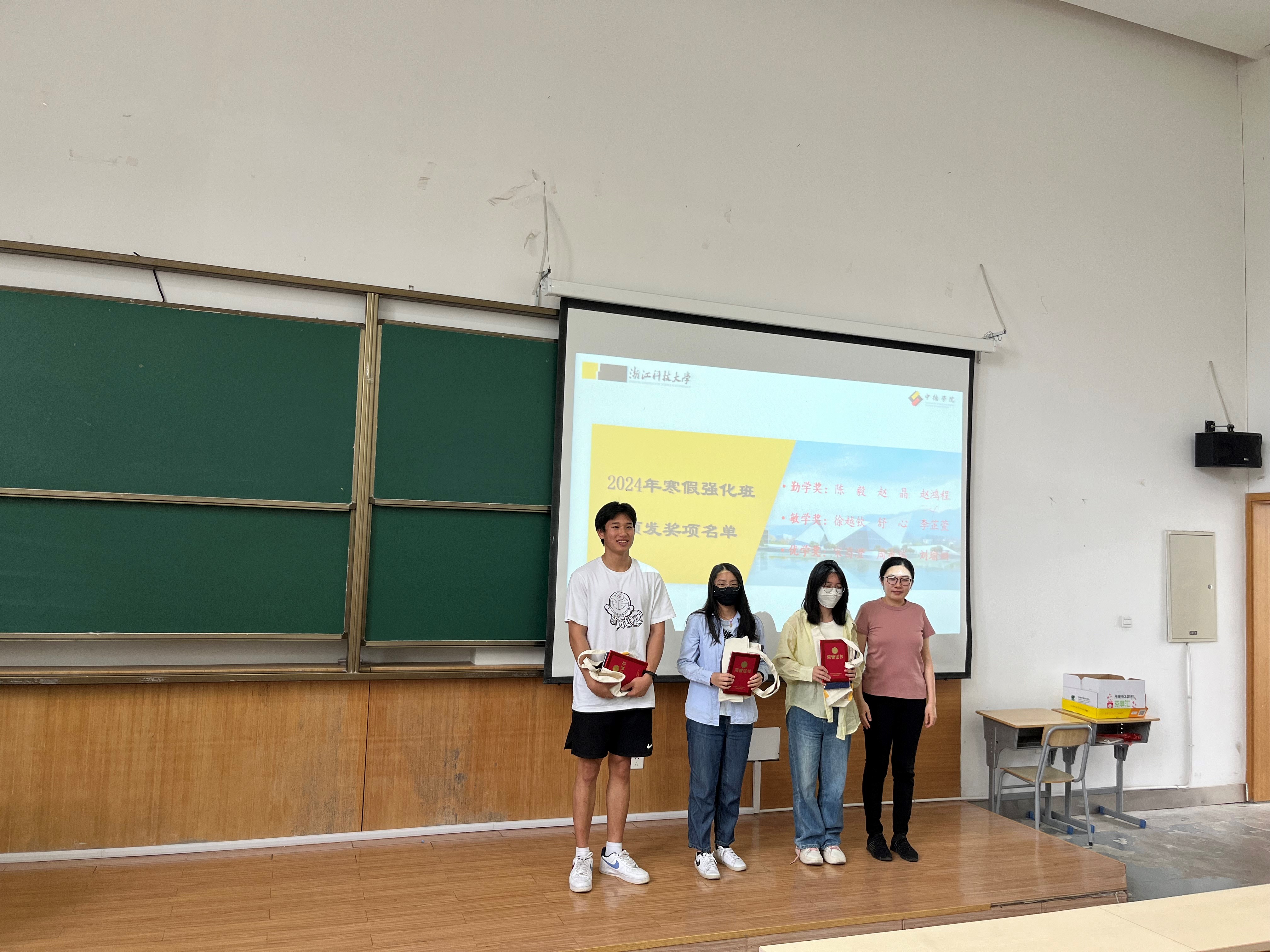 DB彩票 培训部黄骅老师主持颁奖仪式。德语教学部副主任褚静老师,以及一年级组俞丹老师和朱冠文老师,分别向获得勤学奖、敏学奖和优学奖的九位同学颁发了奖状和奖品并合影留念。