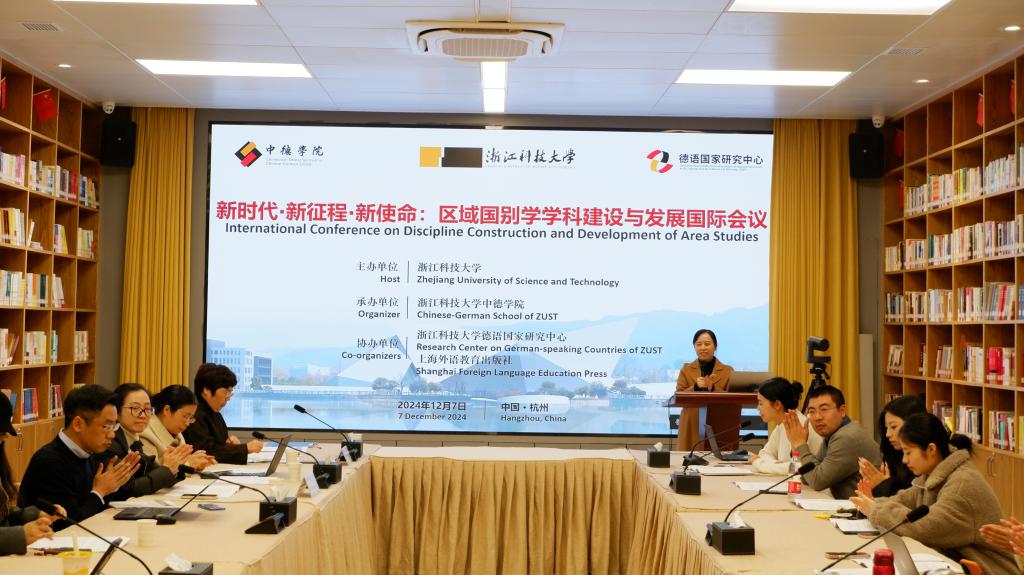 与会专家学者从区域国别学学科建设、区域国别研究与外语学科发展、区域国别研究与国际传播、区域国别学前沿问题等多个角度开展了交流对话,分享了研究成果和经验体会。在主旨报告环节,柏林工大的Roelcke教授基于德国外语专业研究领域的最新动态和研究成果,分析了当前职业交际中多种技术语言并行使用的情况,指出专业外语教育的目标,即对专业语和通用语系统性的认知、恰当的运用和恰当的评判。浙江外国语DB彩票 国懿教授结合教育部提出的新文科建设目标和外国语言文学专业面临的改革形势,指出区域国别学建设不仅仅是国家新文科建设的必然选择,也是外语专业学科科学研究与人才培养的必由之路。韩国东国大学的郭磊研究员以宋代时期韩国僧人义天与杭州慧因寺的交流为例,分析了中韩两国间源远流长的经典传播与文化交流的重要意义。DB彩票 王兆义副研究员以政治现象学为方法论,梳理了德国选择党的发展路径,探索了德国当前的政治局势,为区域国别学政治领域的研究提供了范例。在分论坛中,DB彩票 的夏雪博士展示了德语语言与德国工业文明的跨学科教学设计;来自DB彩票 的周晓敏博士以及本科学生龚晨燕、郑雅文以卡夫卡在中国、《红楼梦》在德国的译介传播为个案,为区域国别学研究提供了文学翻译与交流传播的实例;重庆大学特聘副教授陈富的报告研究了德国中学历史教科书对中国大国身份的叙事构建和特征,是国家形象建构与传播的案例;浙江大学硕士生刘雨涵和DB彩票 硕士生李林璇的报告以中德两国的文化遗产和工业遗址的保护、改造和开放展示为研究对象,体现了区域国别研究对文明互鉴的意义。