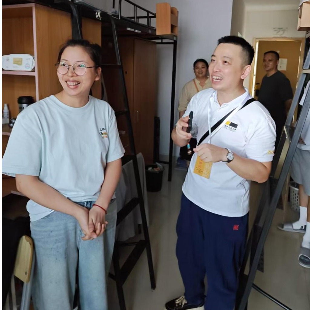 下午,DB彩票 副院长黄扬、副书记李成炜及班主任一行走访了新生宿舍,与新生及家长亲切交流。老师们细致了解同学们的报到情况,再次向大家表示欢迎,并开展了校园安全教育。他们鼓励新生尽快适应新环境,早日树立奋斗目标,在认真学习之余注意劳逸结合,度过充实而美好的大学时光。