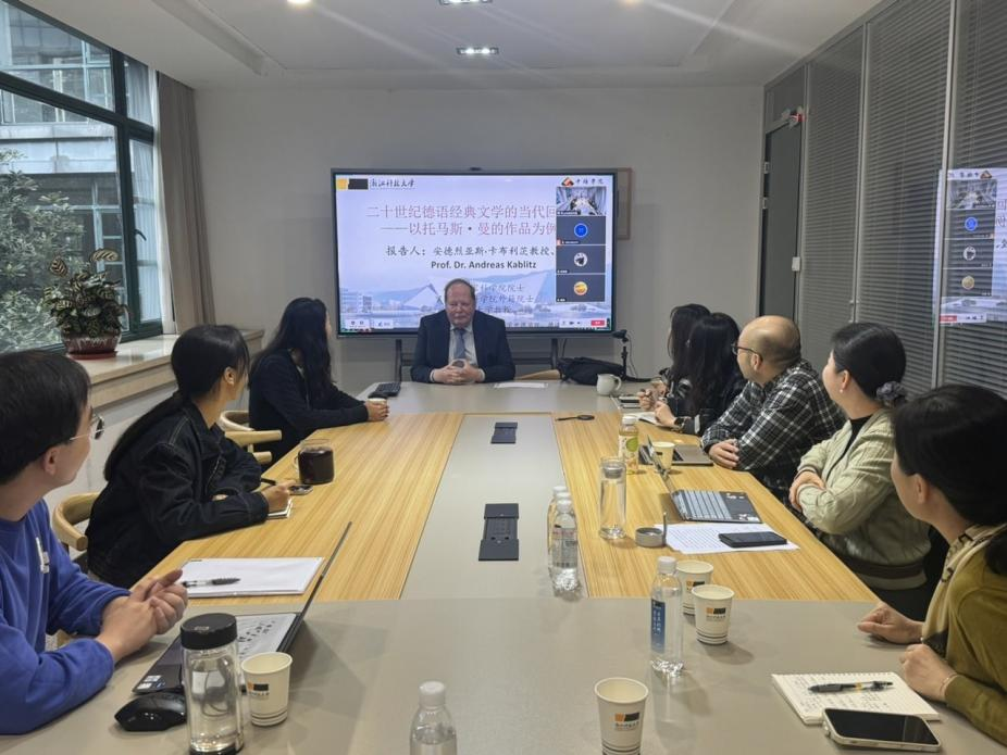 2025年10月21日,德国国家科DB彩票 院士、罗马国家科DB彩票 外籍院士、科隆大学教授安德烈亚斯·卡布利茨教授做客中德荟讲坛。本次学术报告题为“二十世纪德语经典文学的当代回响——以托马斯·曼的作品为例”,由DB彩票 学术副院长陈巧主持,DB彩票 师生、德语国家研究中心等二十余人聆听了本场报告。