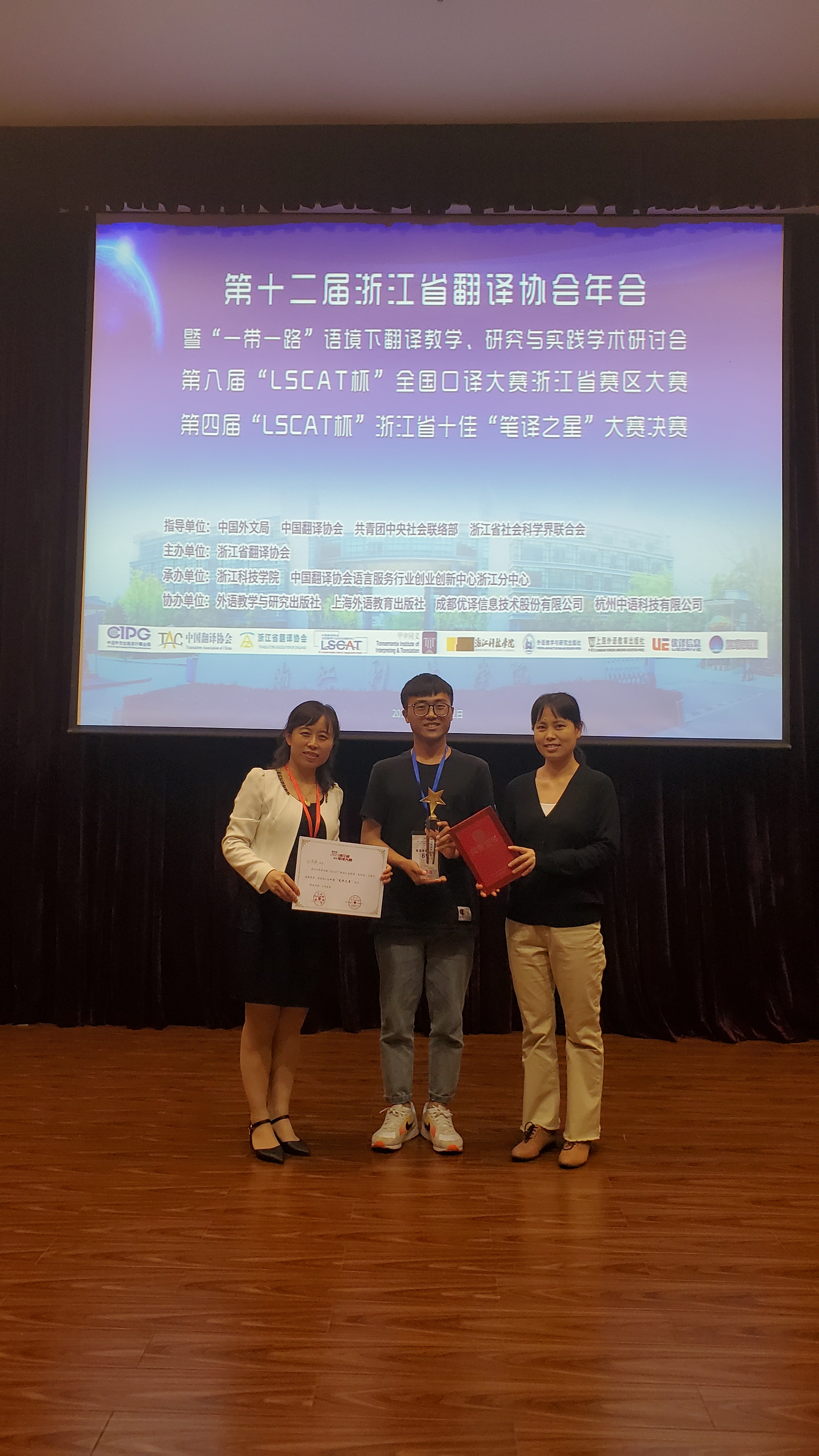 副校长冯军出席闭幕式并为“口译之星”师生颁奖。来自浙江省内高校的130余位外语教师参加了本届年会;300余人次参加了口译大赛初赛、决赛及笔译决赛。