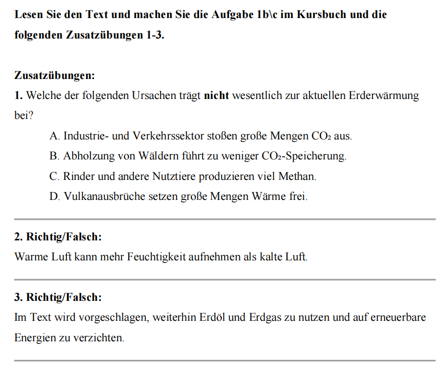 图4:《Klimawandel》单元补充阅读习题截图