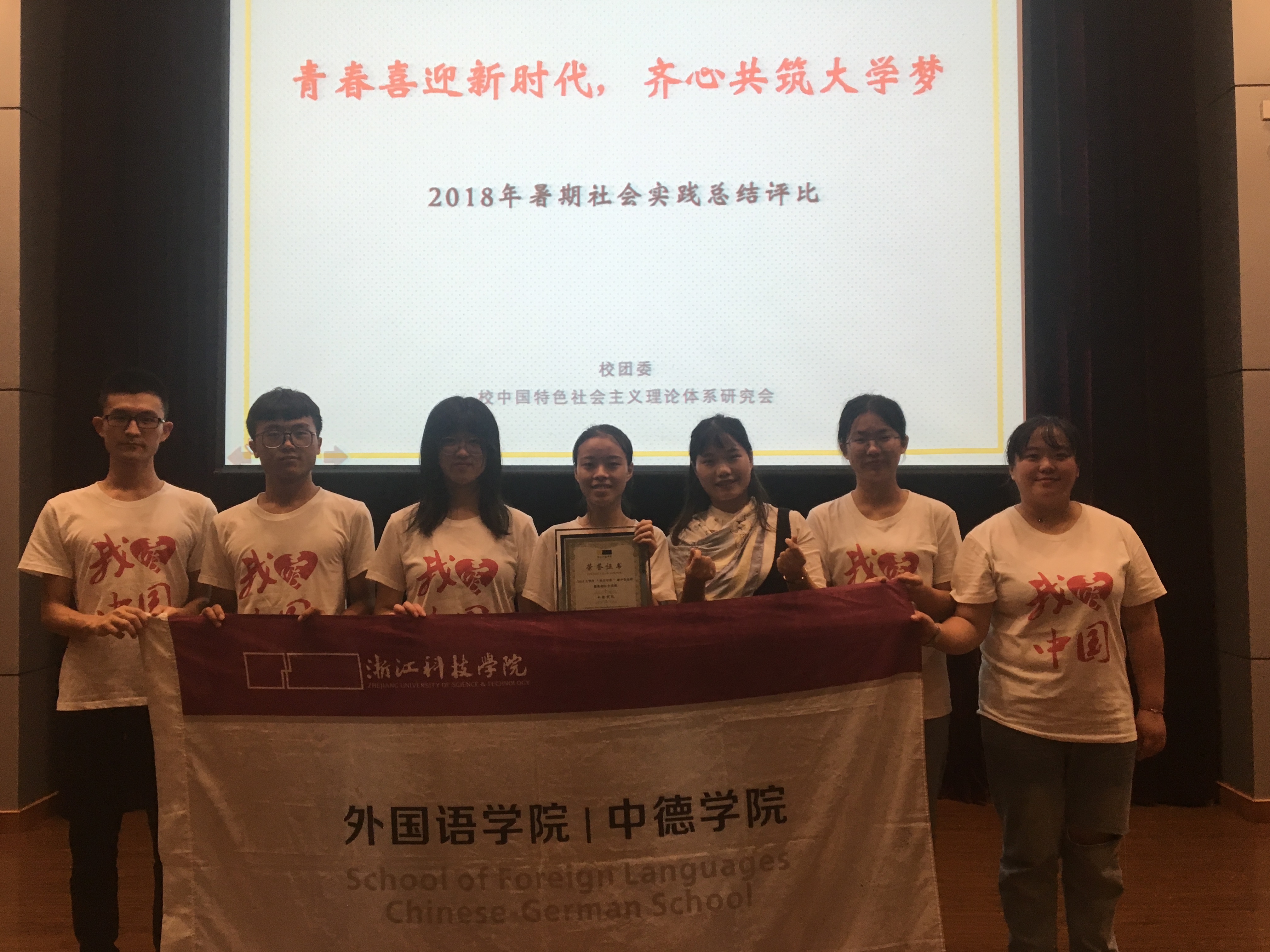队员们来自2016级和20 17级英语德语专业,跨校区、跨年级、跨专业,一起用行动感受大学生参与实践行动的力量。自我组织、深入探究、详细策划,在“绿水青山就是金山银山”理论发源地的安吉余村访谈了党群服务中心,老党员,农家乐老板和志愿者们,领悟当时处于经济还是环境改革中的余村经验,更敬仰起改革阵痛中的红色血液的力量。此外,队员们还利用专业优势担任余村景点英语导游志愿者,助力余村4A级景区的评选。在“美丽乡村”样版村淳安下姜村,我们与老支书共谈,并根据调查所得即兴在乡村大舞台上展现“改革中德下姜村”舞台剧,后期配制双语字幕,引好评如潮。实践队的活动也被中青校园、中青网校园通讯社、浙江学联抱抱团、杭+新闻(杭州日报)等多家媒体报道。