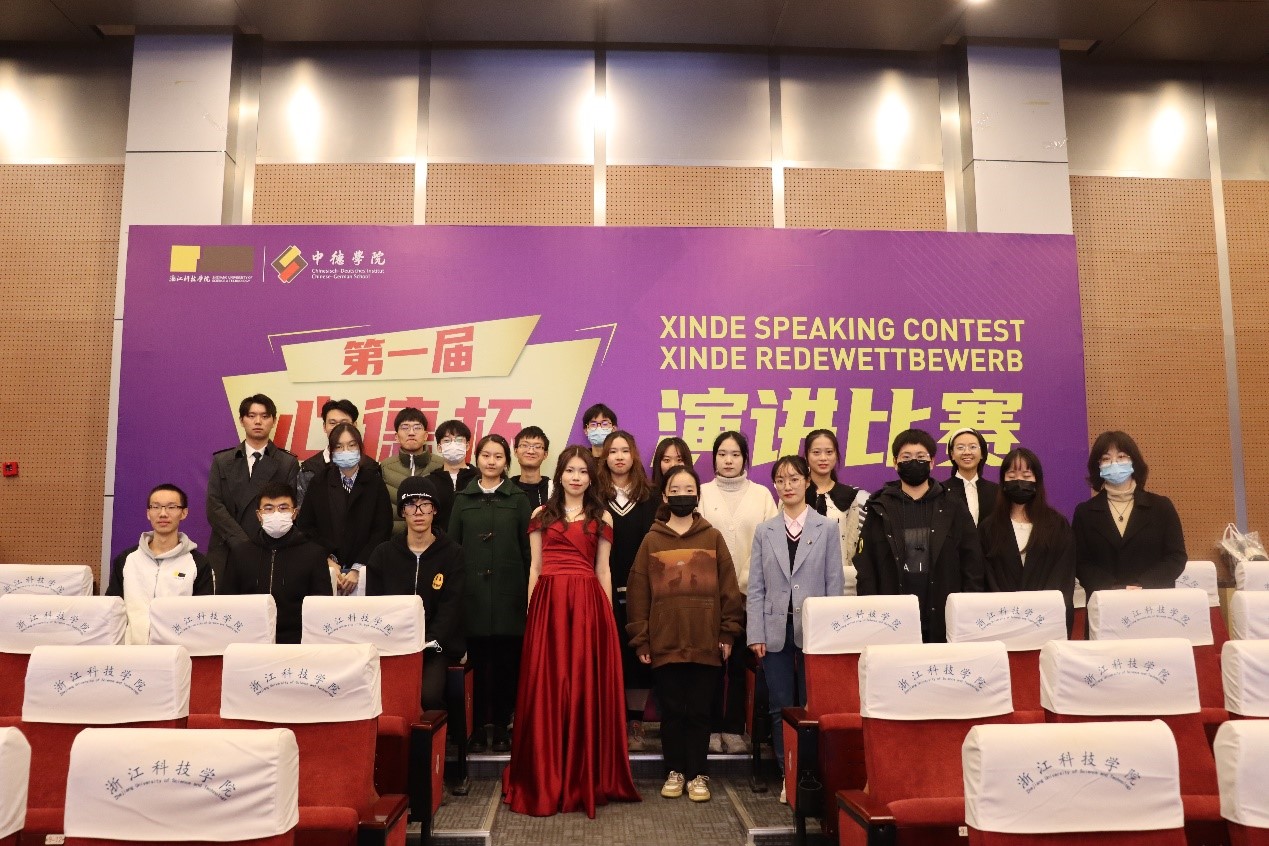 2021年11月12日晚6点,DB彩票 “心德杯”在小和山校区顺利举行,DB彩票 院长韩晓亚、副院长黄扬、外国语DB彩票 党总支副书记方小卿、中德工程师DB彩票 直属党支部副书记李成炜、DB彩票 德语系部主任林方和姚颖莹老师作为评委,与学生们共同泛起探索的轻舟,遨游在“国际文化传播”的海洋中。