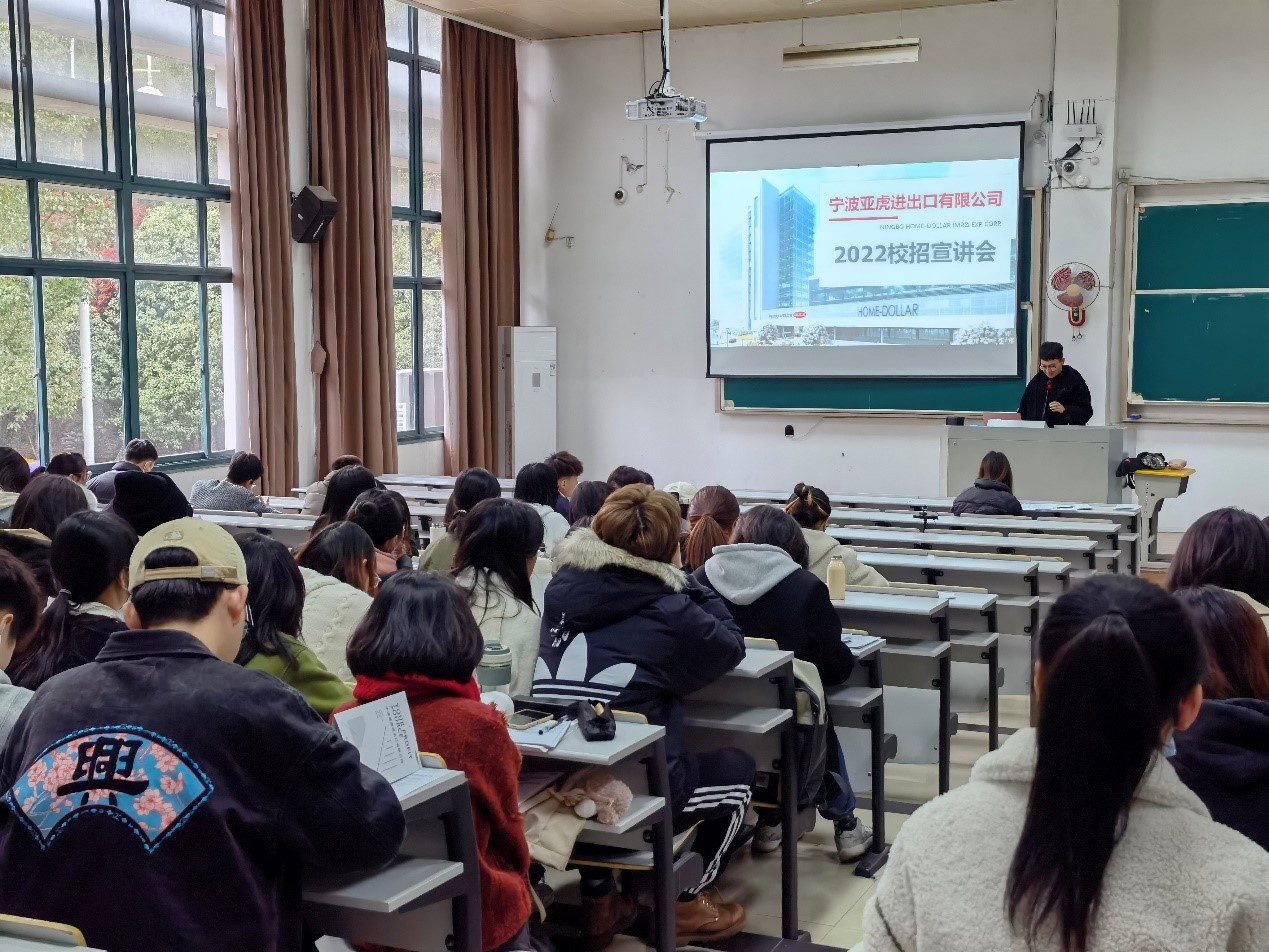 此次会议还邀请了宁波亚虎进出口有限公司进行了现场宣讲,该公司人力总监就公司情况和招聘需求等做了详细讲解,同时也请在该公司就职的2019届校友进行了求职技巧和职场经验的分享。