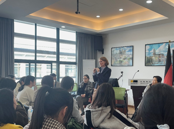 会后,歌德DB彩票 代表团与DB彩票 大三学子进行了座谈,就德语学习和德国留学等方面的问题进行了深入的交流研讨。同学们积极提问,代表团们为同学们慷慨解惑,提出了中肯的建议和殷切的期望。座谈会在意犹未尽的交谈中结束,同学们纷纷表示,通过此次交流活动,不仅了解到了更佳的德语学习方法,也为自己的留学计划打下了坚实的基础。