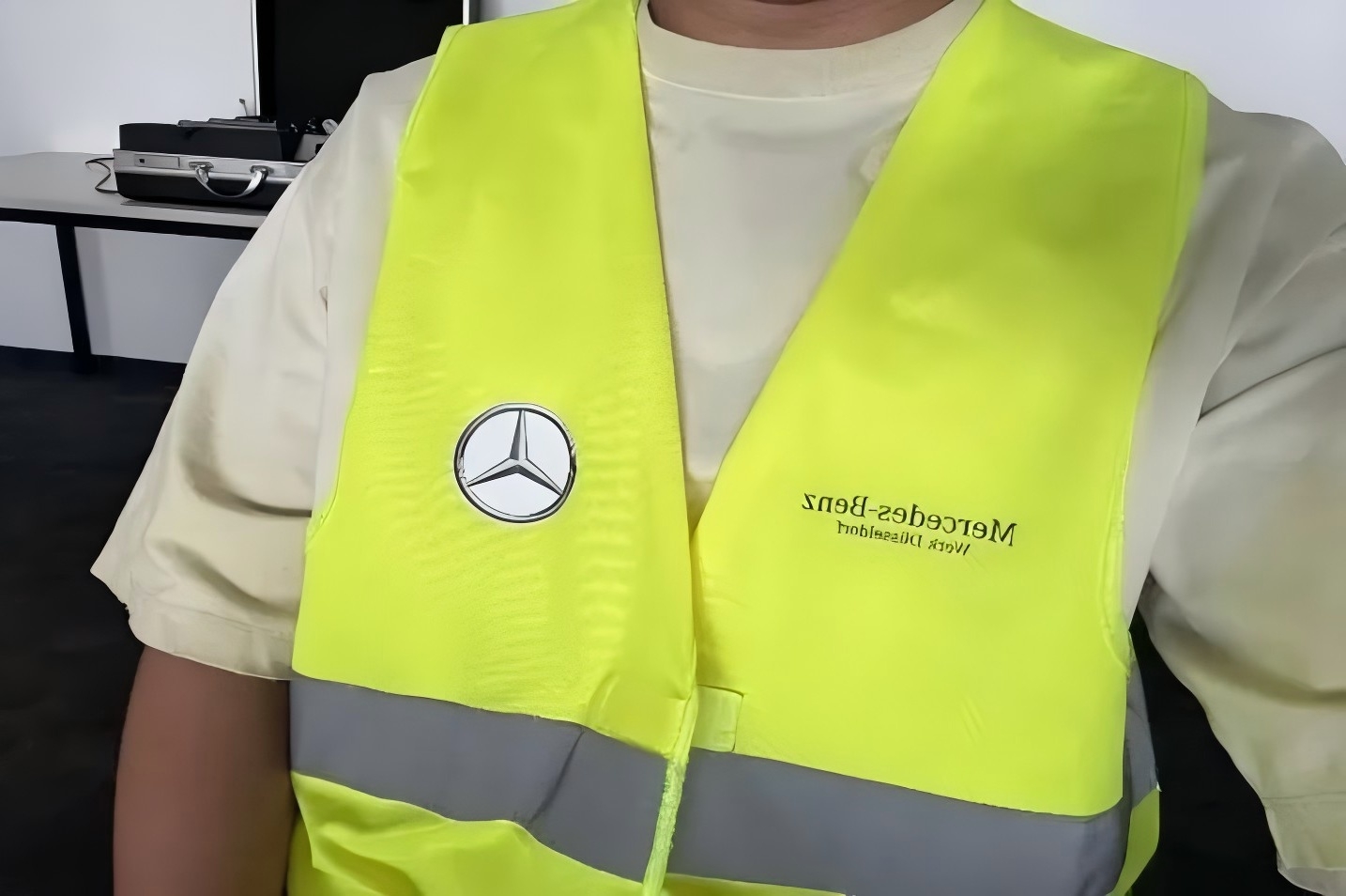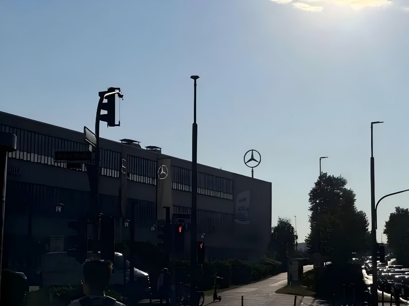 明媚的日光与温柔的微风承载着一路的好心情,我们来到了奔驰工厂。在核对完信息后,导览向我们讲述了奔驰工厂的历史、布局与发展。