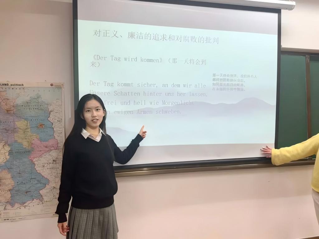 廉洁主题诗歌往往蕴涵着深刻的道德观念,如诚实、正直、公正等。社团成员们通过朗读德语廉洁主题诗歌,将廉洁文化以诗歌这一艺术形式为载体,跨越国界,提高同学们对德国廉洁文化文化的认识与理解,激发社员对廉洁行为的向往和追求。