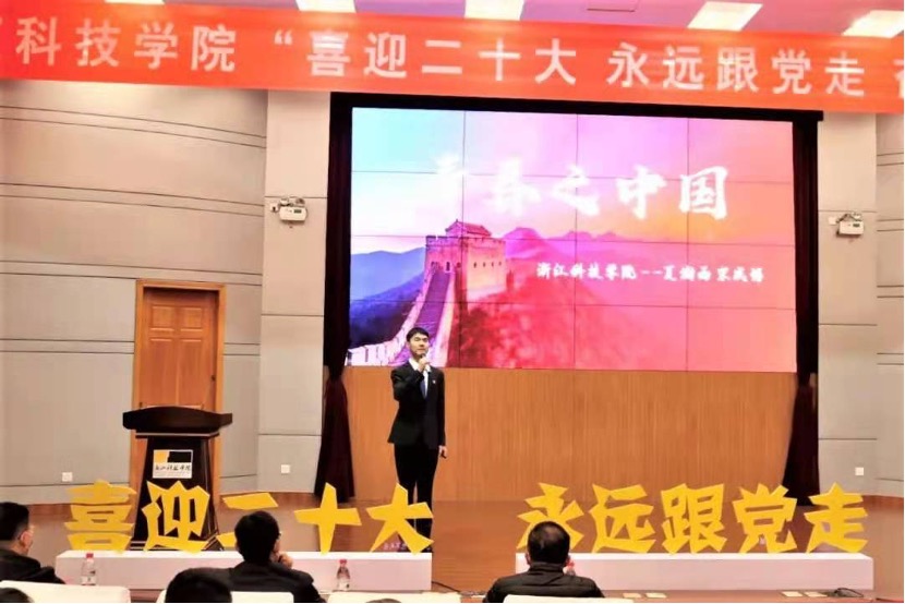 2022年3月29日晚,浙江科技DB彩票 “喜迎二十大,永远跟党走,奋进新征程”思政微课大赛决赛在图书信息中心西报告厅举行。