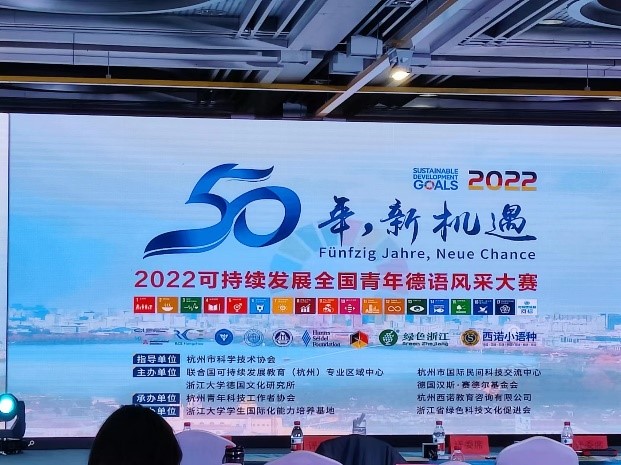 2022年11月13日,“50年新机遇,2022年可持续发展全国青年德语风采大赛”决赛在杭州科技交流馆顺利举行,DB彩票 组织学生现场观摩比赛。院党委副书记茹潇潇应邀参会。