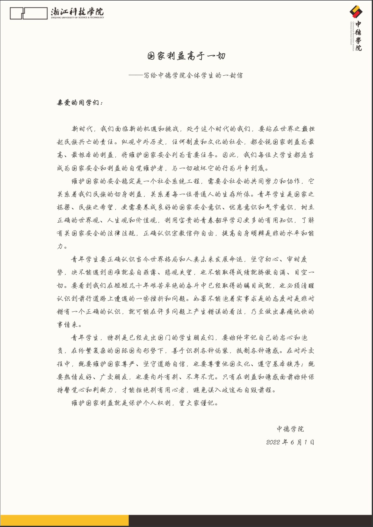 维护国家利益就是保护个人权利,望大家谨记。