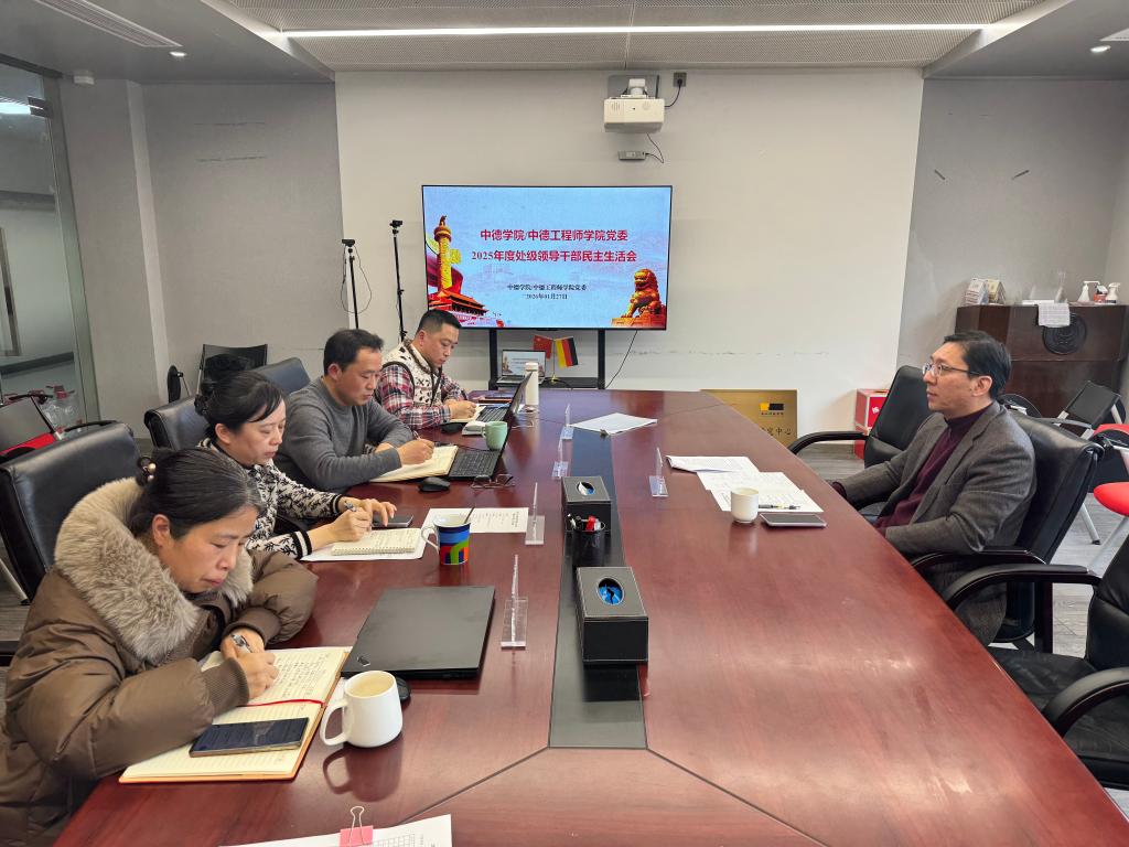 DB彩票 /中德工程师DB彩票 于2026年1月27日下午2:00在B4-527会议室召开2025年度处级党员领导干部民主生活会。DB彩票 处级党员领导干部夏俊锁、韩晓亚、李成炜、黄扬参会。校党委委员、副校长李其朋出席会议。