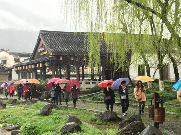 在繁盛的草莓季,老师们一起来到采摘园,体会动手采摘的乐趣,孩子们开心的笑声盈满了竹棚。淅淅沥沥的雨丝毫未影响教师们游览古镇的兴致,白墙朱瓦,精美的壁画引来大家的热烈讨论。龙门古镇为三国东吴大帝孙权故里,历史悠久,文化积淀深厚,留存着浓郁的宗族氛围和独特的民俗风情,至今完好地保存着宏大的明清古建筑群,为国内所罕见,古建筑种类包括祠堂、厅堂、民宅、古塔、石桥、牌楼等。老师们相互分享了关于古镇的历史风情,名人轶事,欢声笑语回荡在古老的窄巷中。