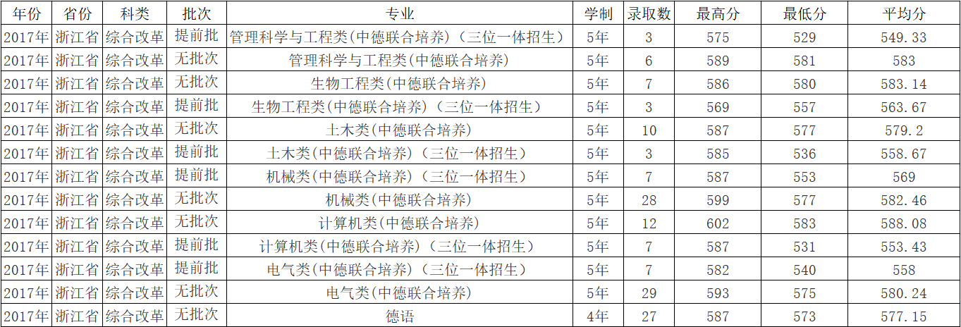 2017年各专业录取统计(浙江省)