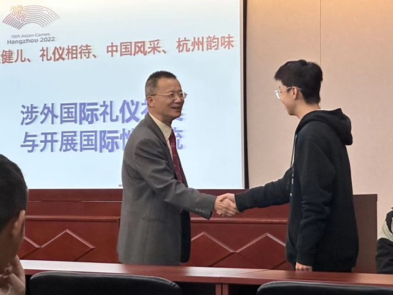 为科普外交礼仪,让学生深入了解国际知识,DB彩票 于2023年11月10日下午开展主题为《涉外国际礼仪礼宾与开展国际性交流》的讲座,讲座邀请了省外办王敏处长进行演讲,DB彩票 老师和中德联合培养本科生项目学生于图书馆报告厅参加讲座。 王处长详细讲解了外交礼仪,穿着打扮以及坐姿站位的相关注意事项,他强调“服装是为了不让你被拒之门外”,这让同学们更深刻的了解了服装对于一个人的形象的重要性,王处长还随机抽取了几名同学进行...